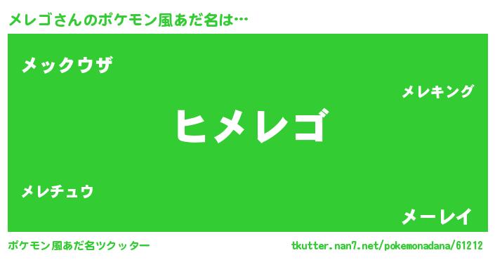 | 男性向けラノベタイトル風あだ名 | 『ダンジョンにメレゴを求めるのは間違っているだろうか』 |