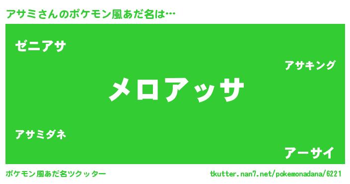 | 欧米人風あだ名 | 『アサミ・ステッグマイヤー』 |