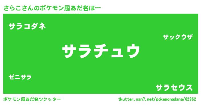 | ヒーロー風カッコイイあだ名 | 『スーパーサラコ』『ウルトラさらこマン』 |