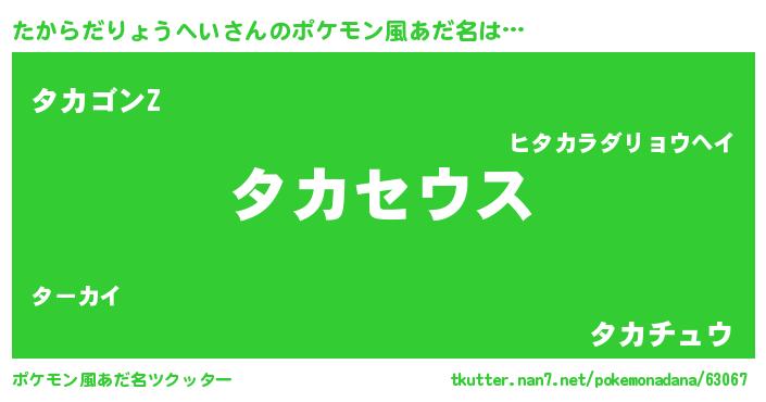 | 男性向けラノベタイトル風あだ名 | 『Re:たからだりょうへいから始める異世界生活』 |
