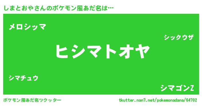| 女子向けラノベタイトル風あだ名 | 『しまとおやの卵を拾いまして』 |