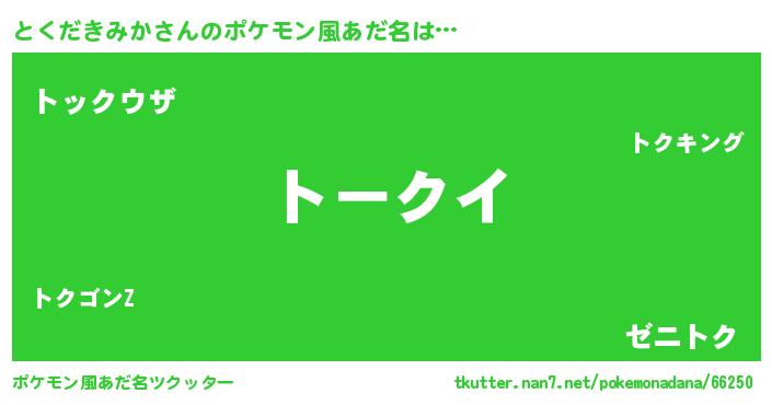 | 意味不明あだ名 | 『住所不定無職とくだきみか(79歳)』 |
