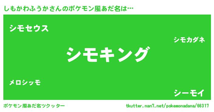 | 意味不明あだ名 | 『もやし科しもかわふうか属』 |