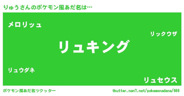 | ヒーロー風カッコイイあだ名 | 『最強戦士リュウ』『愛の使者りゅう』 |