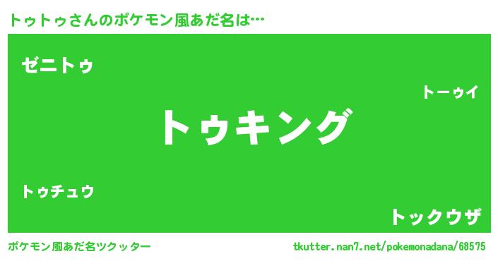 | 男性向けラノベタイトル風あだ名 | 『トゥトゥ~年齢イコール彼女いない歴の魔法使い~』 |