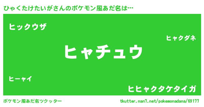 | ヒーロー風カッコイイあだ名 | 『スーパーヒャクタケタイガ』 |