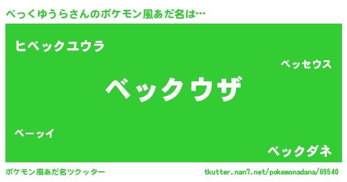 | 男性向けラノベタイトル風あだ名 | 『おまえをオタクにしてやるから、俺をべっくゆうらにしてくれ! 』 |