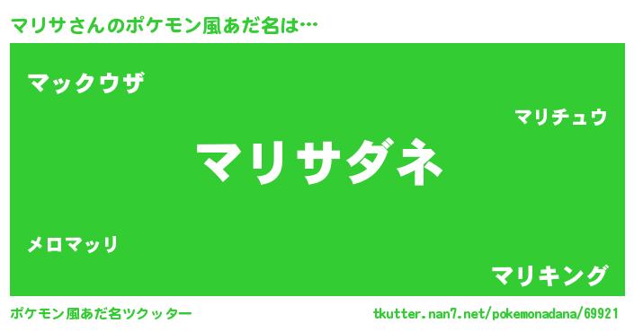 | 女子向けラノベタイトル風あだ名 | 『マリサの雑貨屋さん』『マリサ恋絵巻』 |