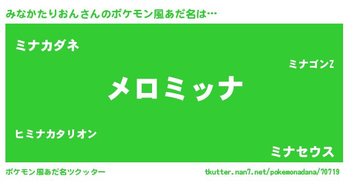 | 男性向けラノベタイトル風あだ名 | 『うちのみなかたりおんが世界を掌握している!』 |