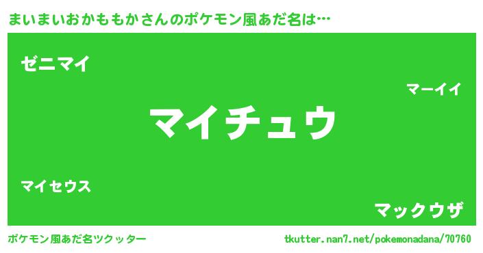 | 欧米人風あだ名 | 『マイケルまいまいおかももか』 |
