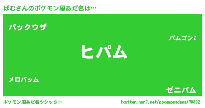 | ヒーロー風カッコイイあだ名 | 『銀牙騎士パム』『慈愛の使者ぱむ』 |