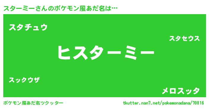 | 女子向けラノベタイトル風あだ名 | 『スターミーの卵を拾いまして』 |