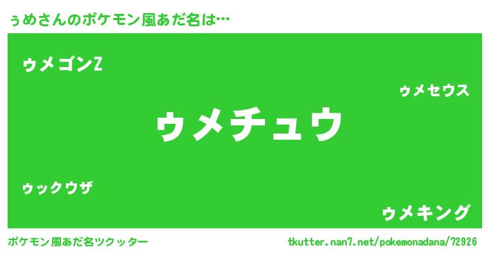 | ヒーロー風カッコイイあだ名 | 『スーパーゥメ』『ウルトラ戦士ゥメ』 |