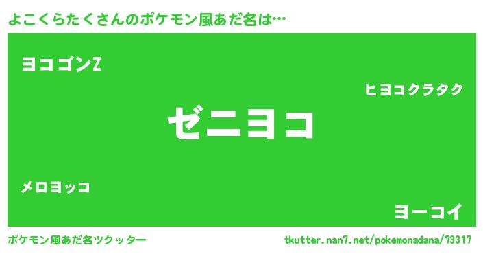 | 男性向けラノベタイトル風あだ名 | 『よこくらたくという概念が存在しない退屈な世界 』 |