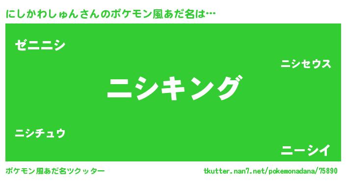 | 男性向けラノベタイトル風あだ名 | 『にしかわしゅん~年齢イコール彼女いない歴の魔法使い~』 |
