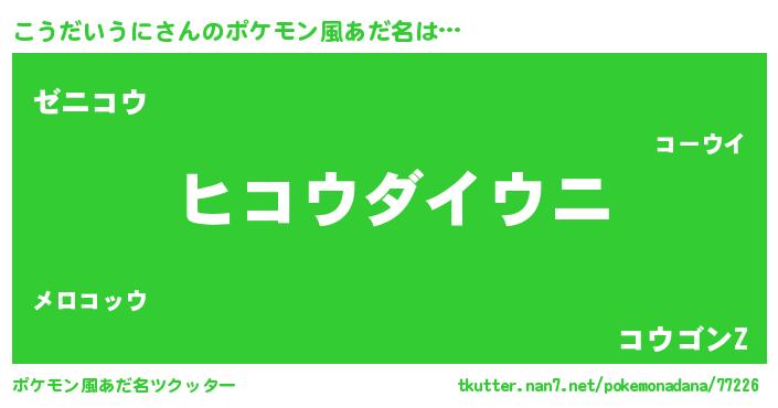 | ピコ太郎風あだ名 | 『コウ次郎』『ピココ郎』『ココ太郎』 |