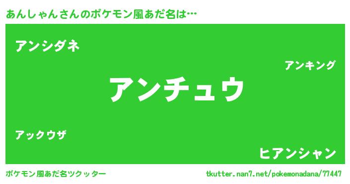 | 男性向けラノベタイトル風あだ名 | 『あんしゃんの憂鬱』 |
