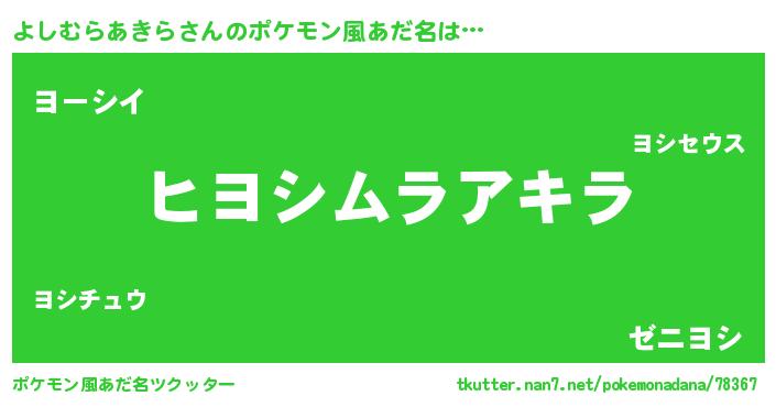 | 意味不明あだ名 | 『とにかく怪しいよしむらあきら』 |