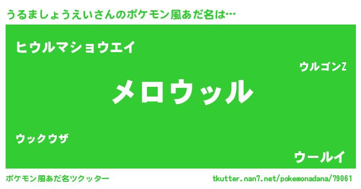 | 意味不明あだ名 | 『とにかく怪しいうるましょうえい』 |