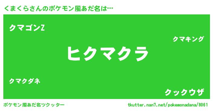| 男性向けラノベタイトル風あだ名 | 『くまくらの嫁は女の子じゃないと思った?』 |