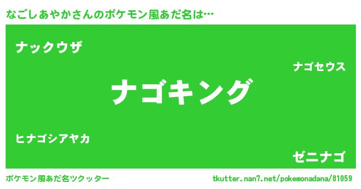 | 男性向けラノベタイトル風あだ名 | 『なごしあやか~年齢イコール彼女いない歴の魔法使い~』 |