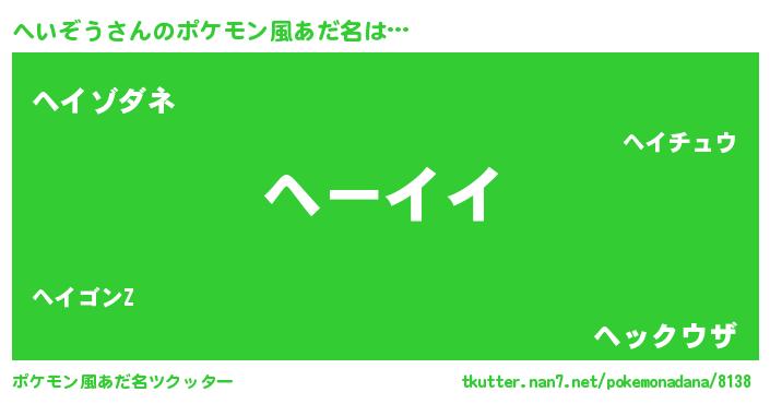 | ヒーロー風カッコイイあだ名 | 『仮面ヘイダー』『ウルトラへいぞうマン』 |