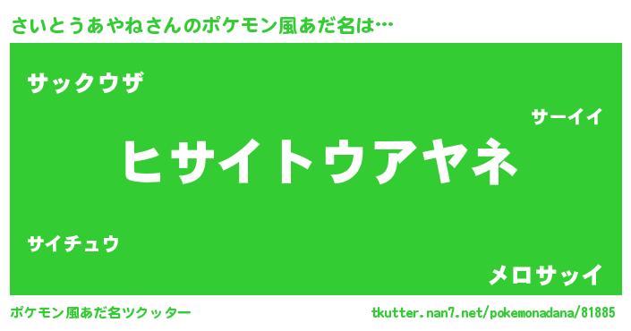 | 意味不明あだ名 | 『とにかく怪しいさいとうあやね』 |