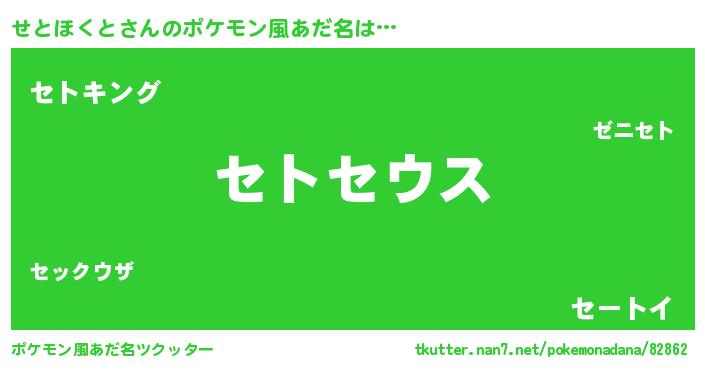 | 意味不明あだ名 | 『自称せとほくと』『永久保存せとほくと』 |