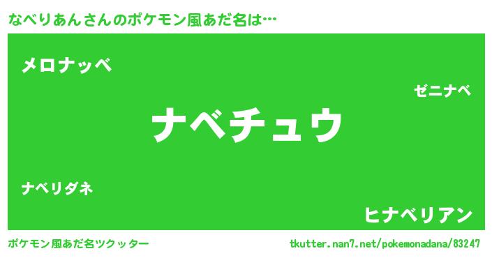 | 2回繰り返すあだ名 | 『なべなべ』『だらだら』『ななべべ』 |