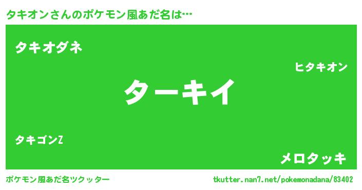 | ヒーロー風カッコイイあだ名 | 『仮面タキダー』『ウルトラタキオンマン』 |