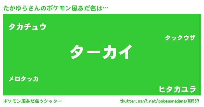 | ヒーロー風カッコイイあだ名 | 『仮面タカダー』『スーパータカユラ』 |