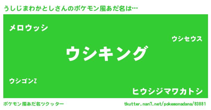 | 男性向けラノベタイトル風あだ名 | 『うしじまわかとし~年齢イコール彼女いない歴の魔法使い~』 |