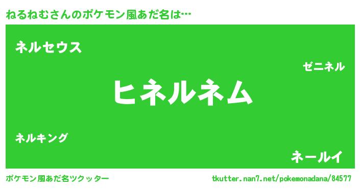 | 男性向けラノベタイトル風あだ名 | 『ねるねむの嫁は女の子じゃないと思った?』 |