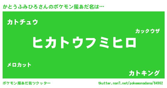 | ヒーロー風カッコイイあだ名 | 『幻影騎士カト』『ネオカトウフミヒロ』 |