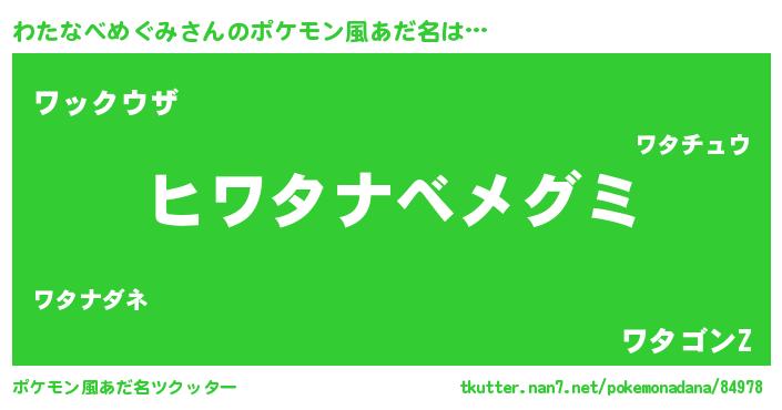 | 女子向けラノベタイトル風あだ名 | 『わたなべめぐみの卵を拾いまして』 |
