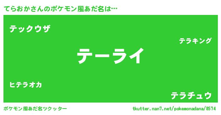 | 男性向けラノベタイトル風あだ名 | 『魔弾の王とてらおか』 |