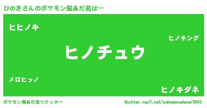 | 2回繰り返すあだ名 | 『ひのひの』『にたにた』『ひひのの』 |