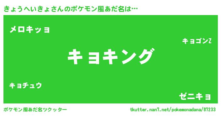 | 男性向けラノベタイトル風あだ名 | 『転生したらきょうへいきょだった件』 |