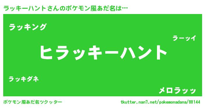 | 女子向けラノベタイトル風あだ名 | 『ラッキーハントの卵を拾いまして』 |