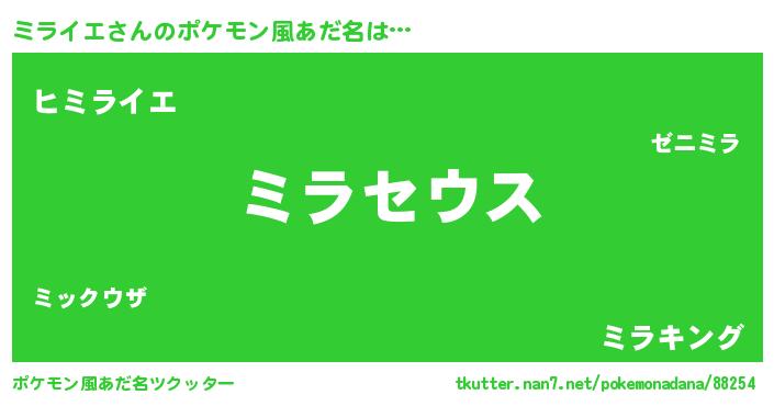 | ヒーロー風カッコイイあだ名 | 『究極戦士ミライエ』『銀牙騎士ミラ』 |