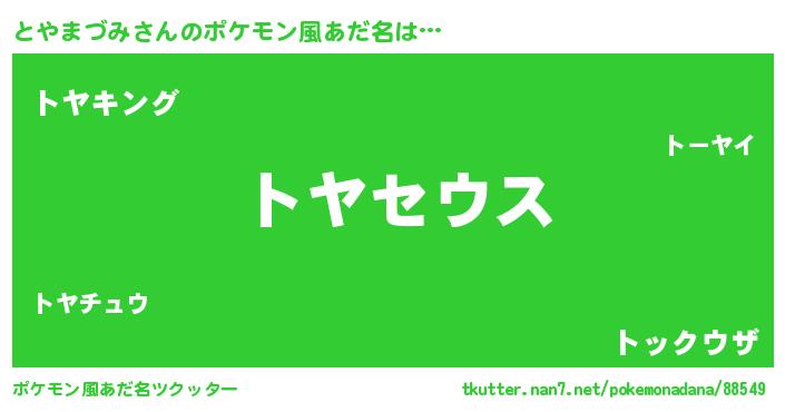 | ヘコむあだ名 | 『とやっふぃ~』『とやまづみ(震え声)』 |