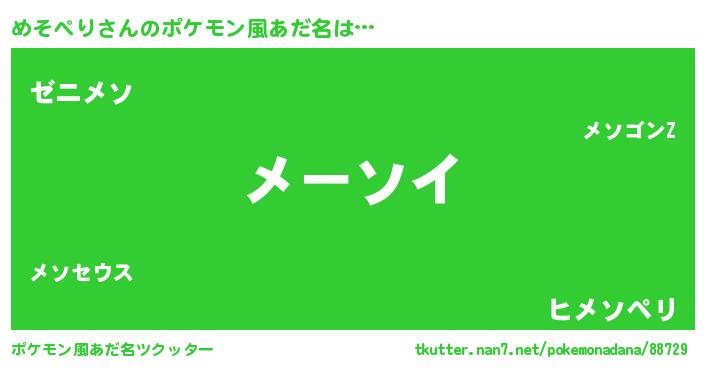 | ヘコむあだ名 | 『めそぺり(震え声)』『めそぷりん』 |