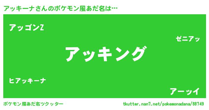 | 男性向けラノベタイトル風あだ名 | 『アッキーナ~年齢イコール彼女いない歴の魔法使い~』 |