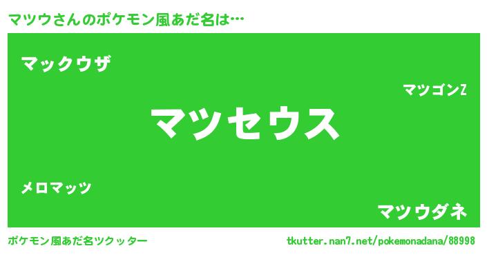 | 男性向けラノベタイトル風あだ名 | 『Re:マツウから始める異世界生活』 |