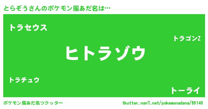 | 男性向けラノベタイトル風あだ名 | 『とらぞうの嫁は女の子じゃないと思った?』 |