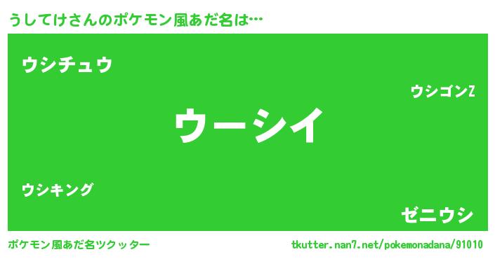 | 男性向けラノベタイトル風あだ名 | 『魔弾の王とうしてけ』『うしてけの憂鬱』 |