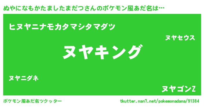 | 男性向けラノベタイトル風あだ名 | 『ヌヤニナモカタマシタマダツスレイヤー』 |