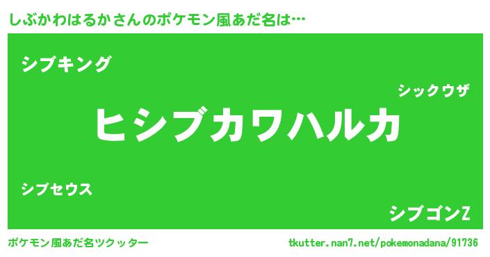 | 欧米人風あだ名 | 『ウサインしぶかわはるか』 |