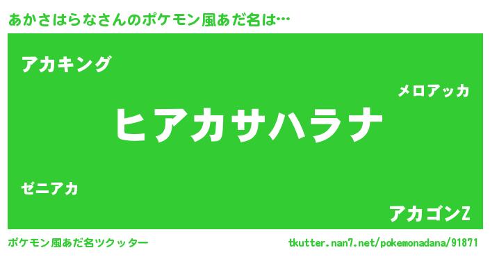 | 男性向けラノベタイトル風あだ名 | 『あかさはらなの嫁は女の子じゃないと思った?』 |