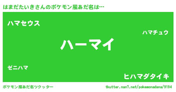 | ヒーロー風カッコイイあだ名 | 『仮面ハマダー』『銀牙騎士ハマ』 |